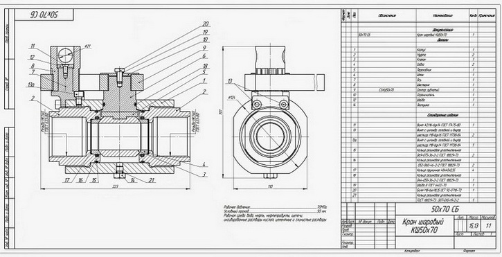 Шаровый кран КШ АФНИ 50х70 (АФНИ.306121.005) состоит из корпуса, в который ввернуты муфты для присоединения к трубопроводу. В корпусе установлены седла и клапан (шар).